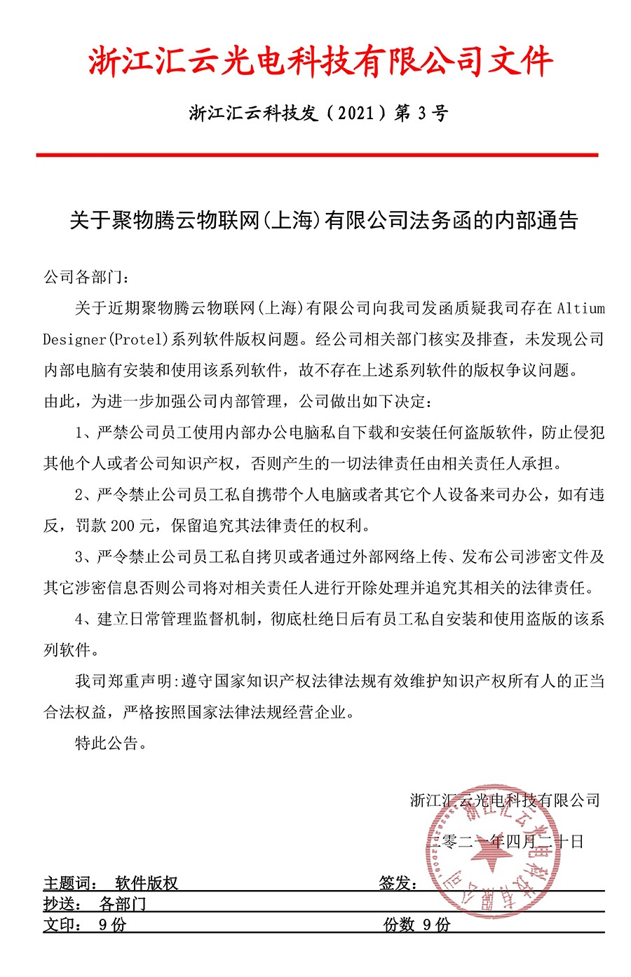 關(guān)于聚物騰云物聯(lián)網(wǎng)(上海)有限公司法務(wù)函的內(nèi)部通告